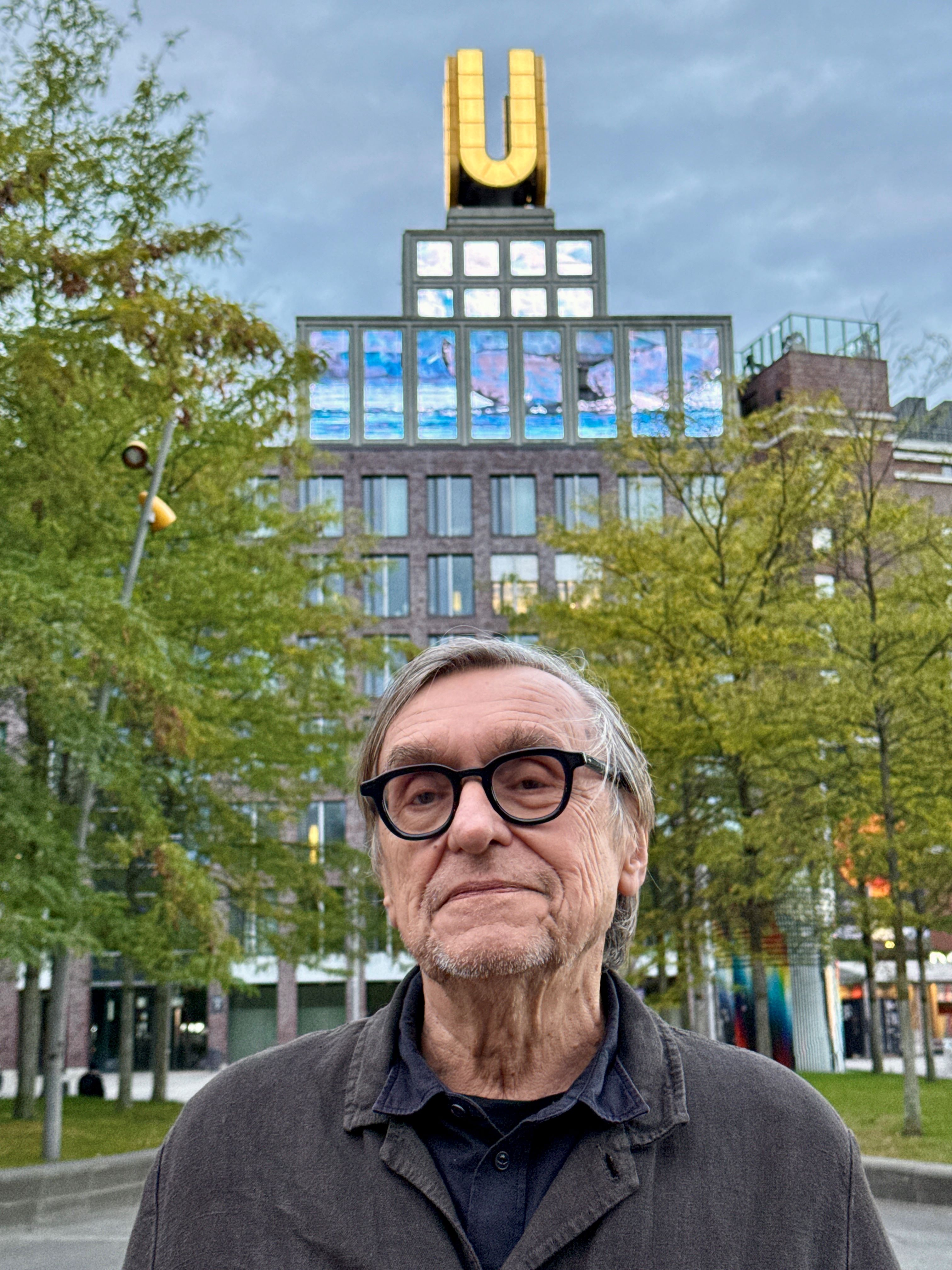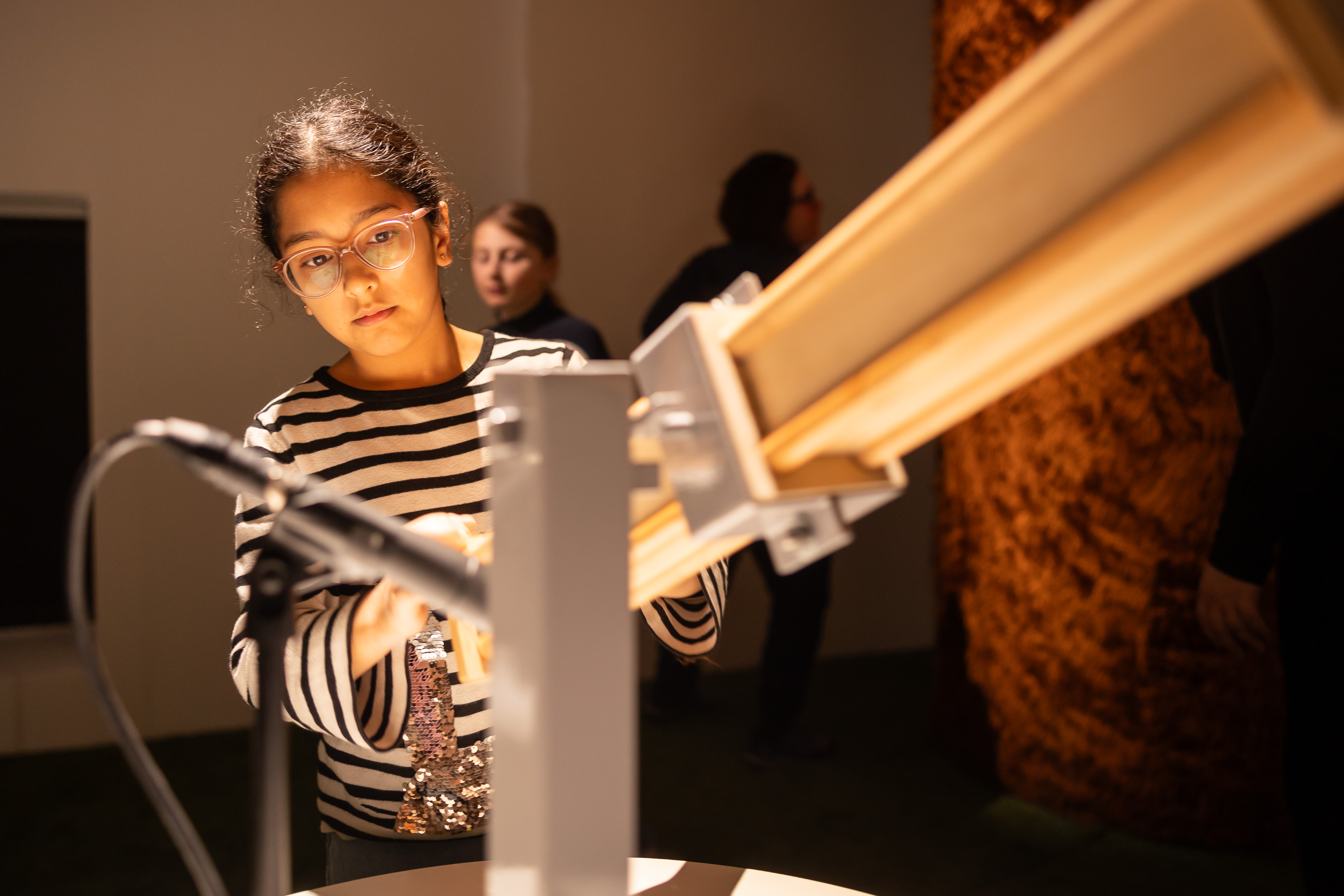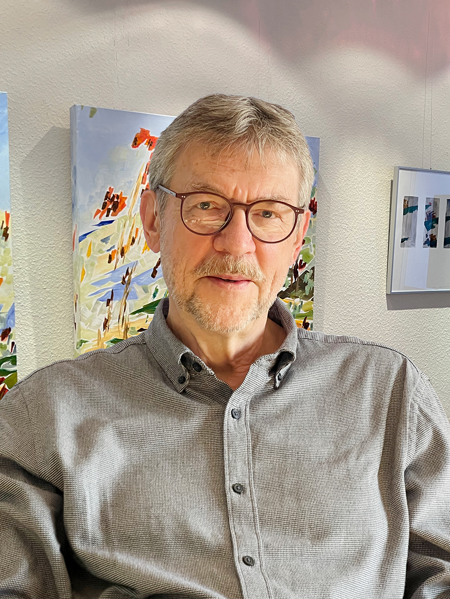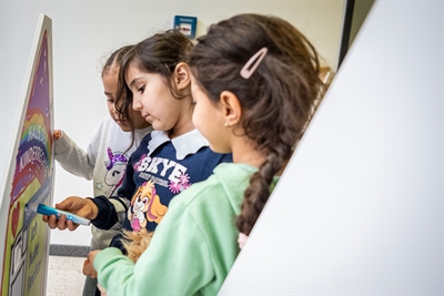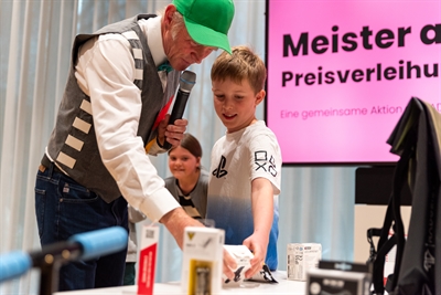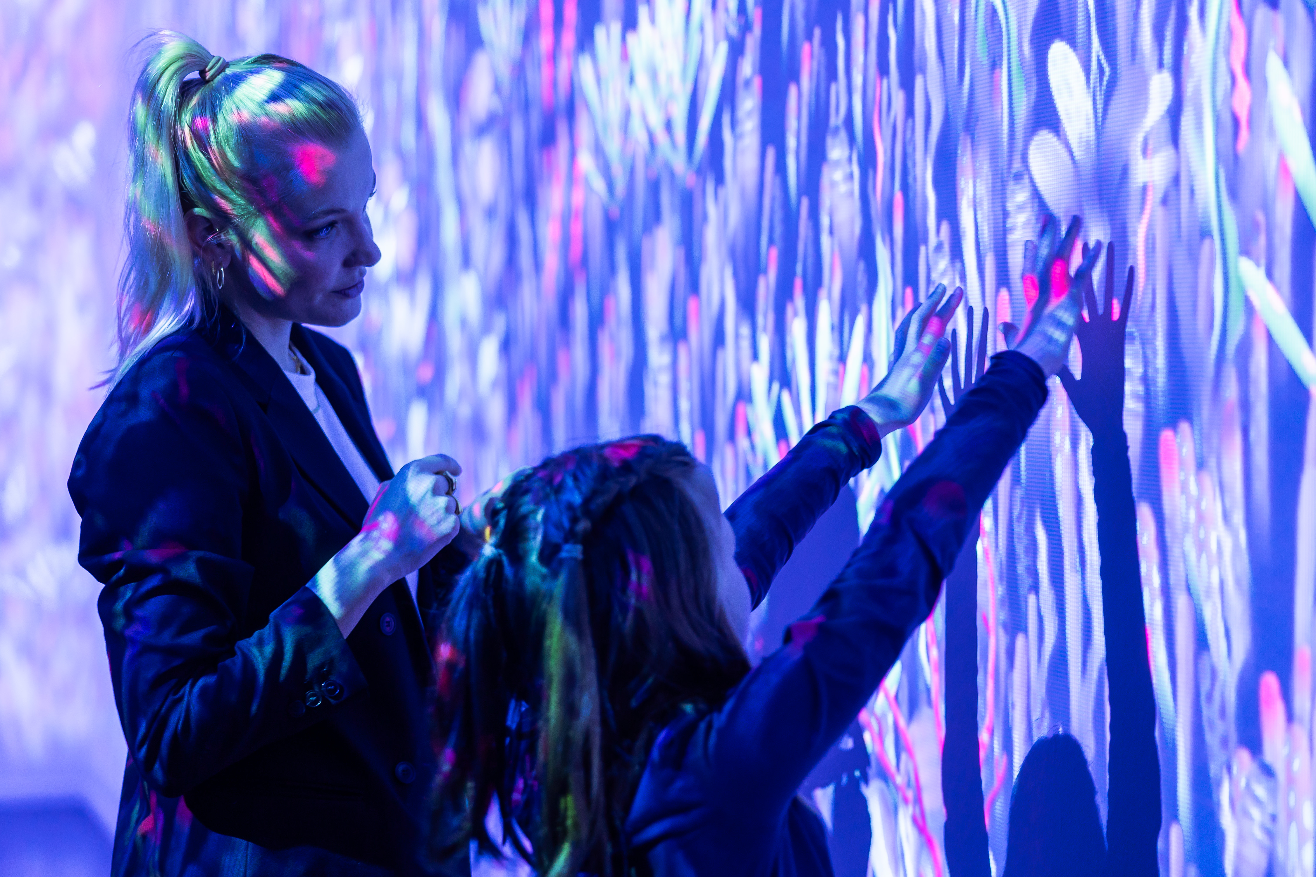 "Pixelfieber"-Ausstellungsmacher Dirk Mempel an einer Mitmach-Station zum Thema Grundfarben.