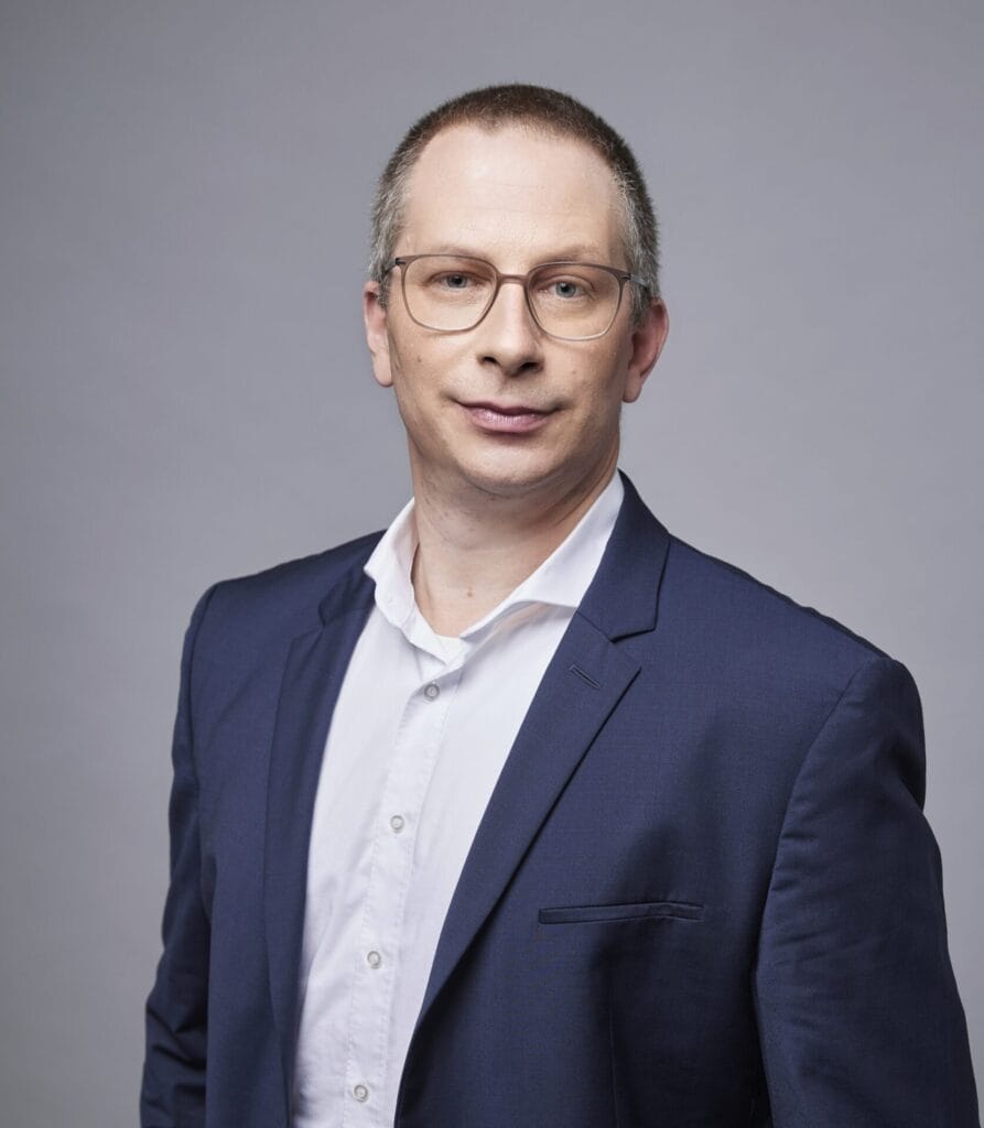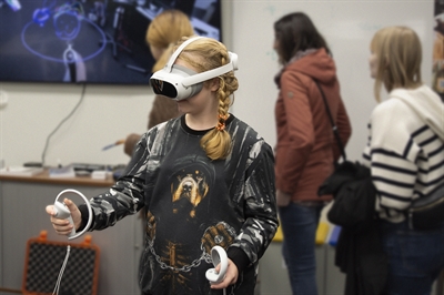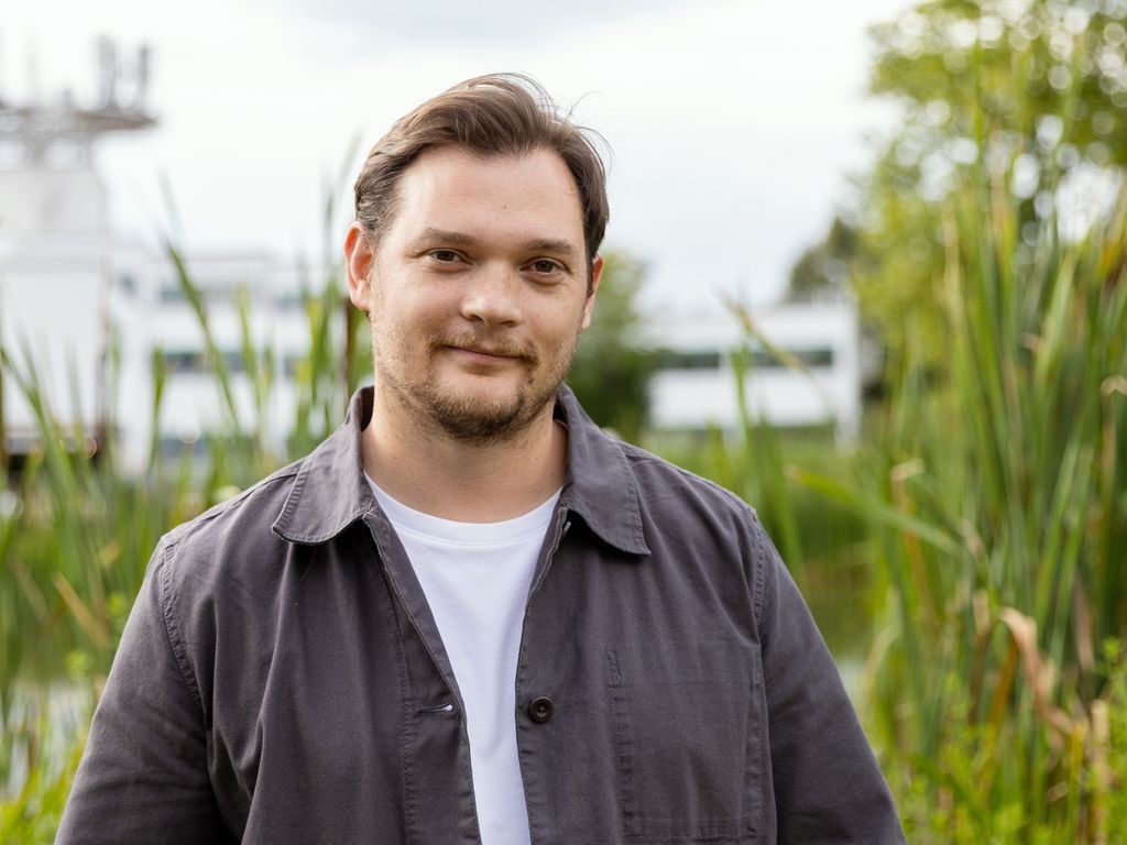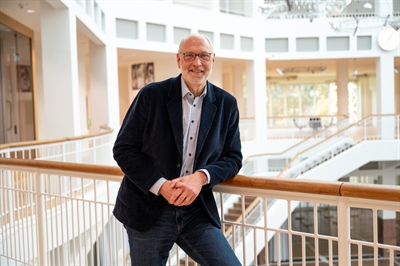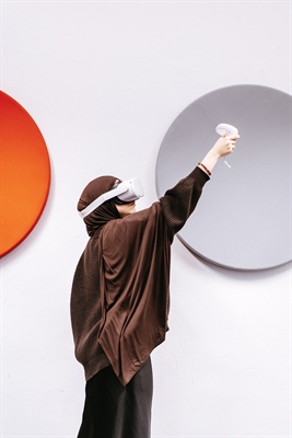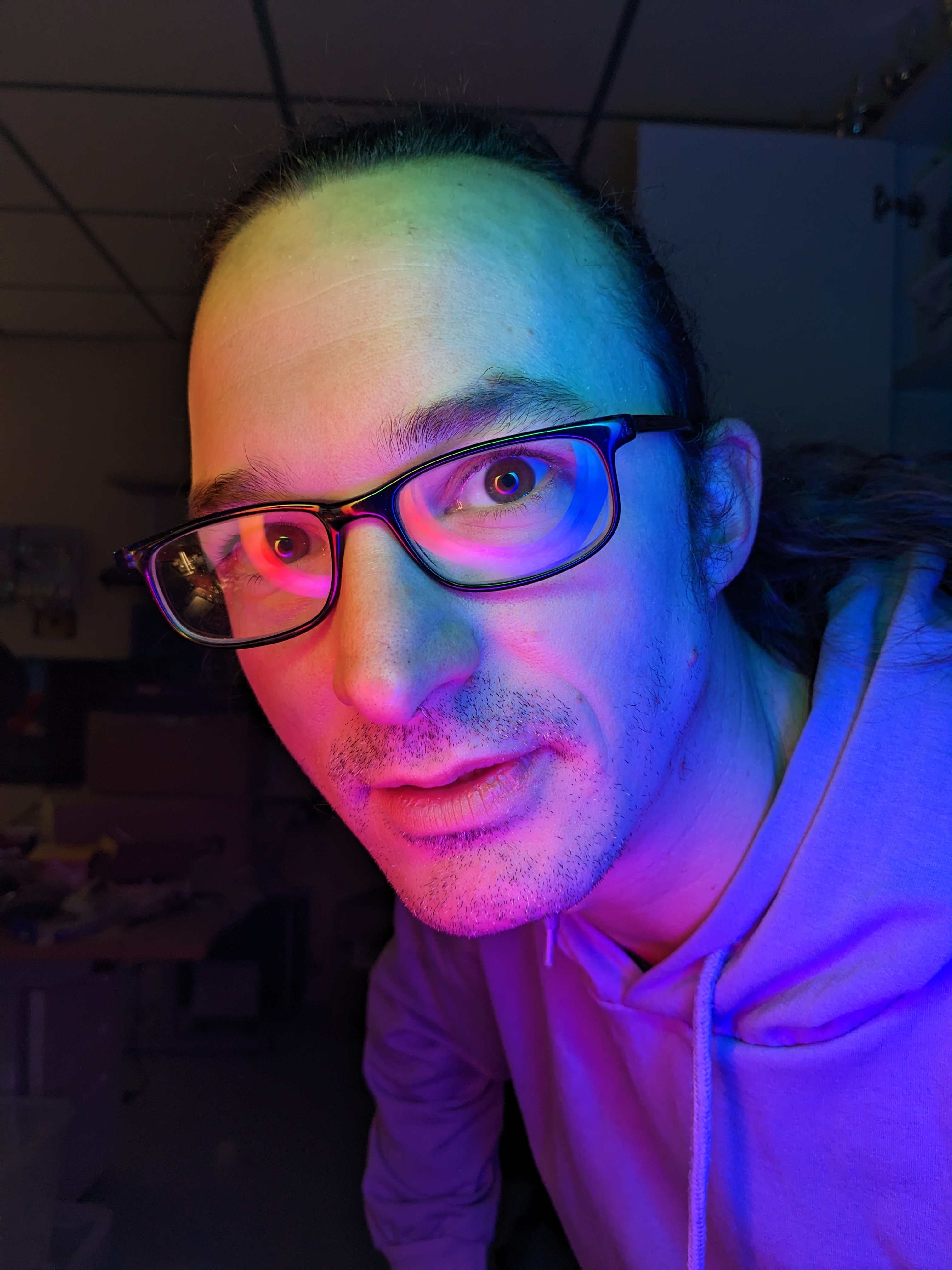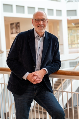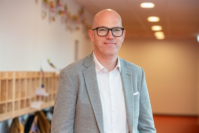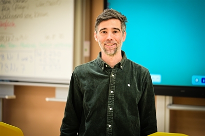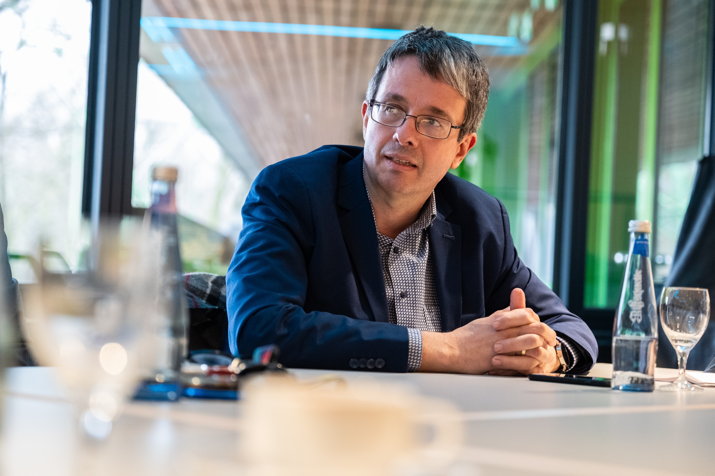 "Pixelfieber"-Ausstellungsmacher Dirk Mempel an einer Mitmach-Station zum Thema Grundfarben.