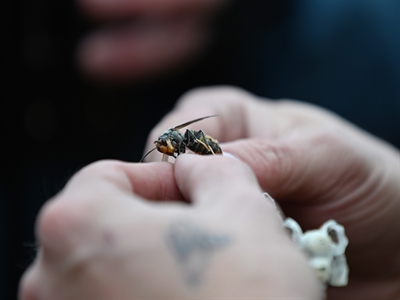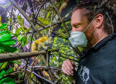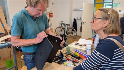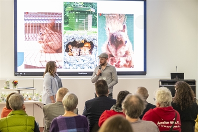 In der "Waldameisen"-Ausstellung: Dr. Oliver Adrian und Muriel Montag vom Naturmuseum.