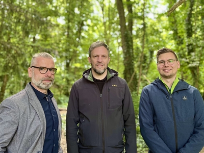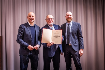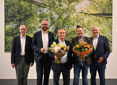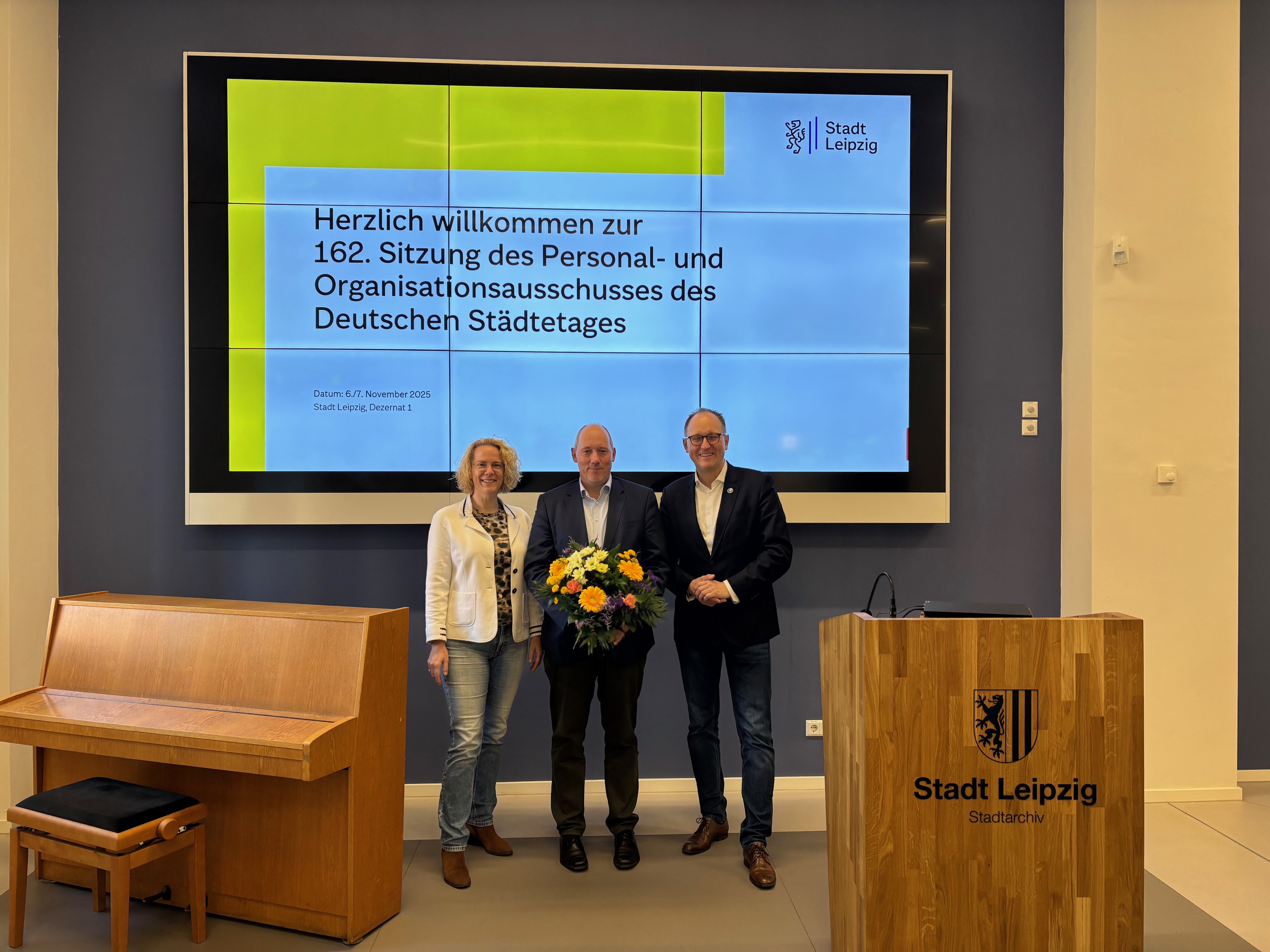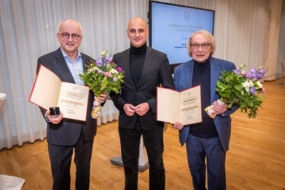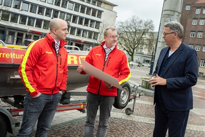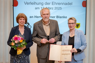 OB Alexander Kalouti zeichnete Michael Küstermann (links) und Olaf Meyer (rechts) mit der städtischen Ehrennadel aus.