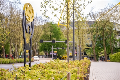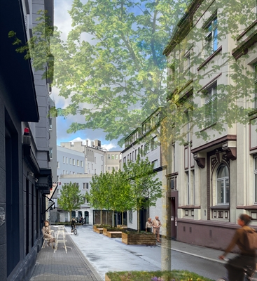 Neugestaltung westliches Umfeld am Dortmunder U: Visualisierung Emil-Schumacher-Straße mit Blick auf Studierendenapartments