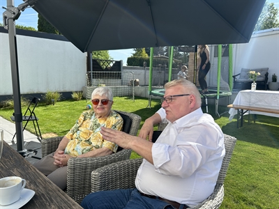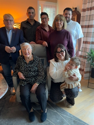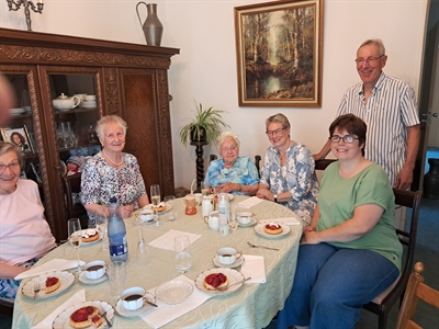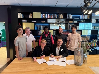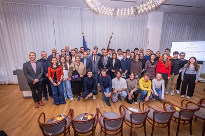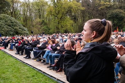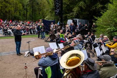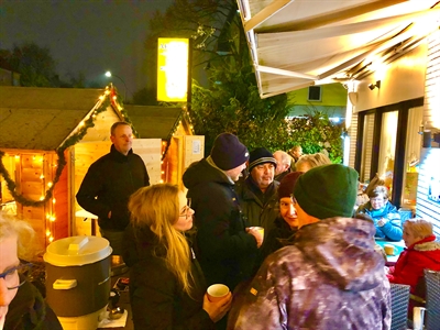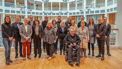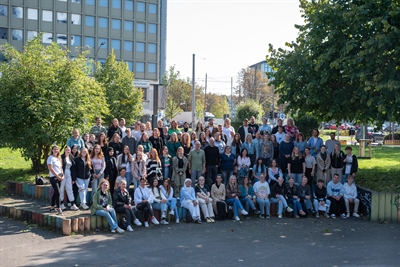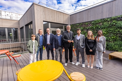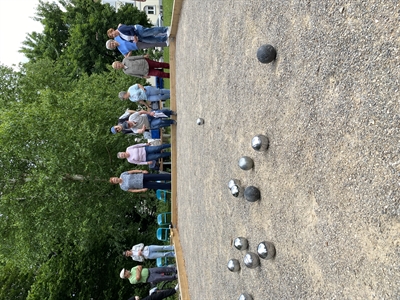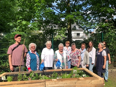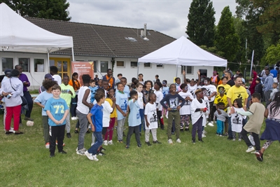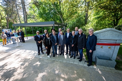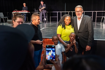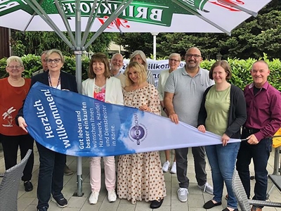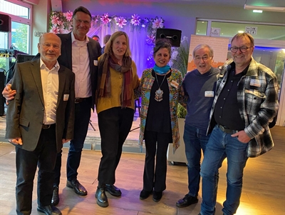 OB Kalouti inmitten der französischen Delegation. Zur Feier des 65. Jubiläums der Städtepartnerschaft mit Amiens waren viele Jugendliche mitgereist, die die Feier mit einem szenischen Beitrag gestalteten. Zwei von ihnen hatten sogar Geburtstag.