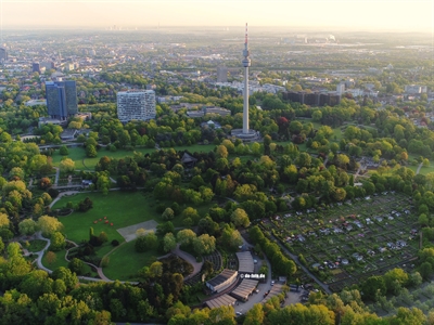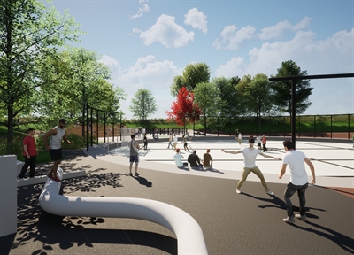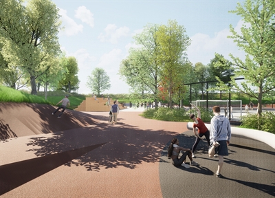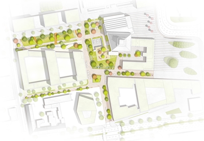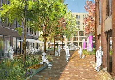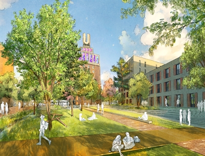 Neugestaltung westliches Umfeld am Dortmunder U: Visualisierung Park zwischen Berufskollegs und Studierendenapartments