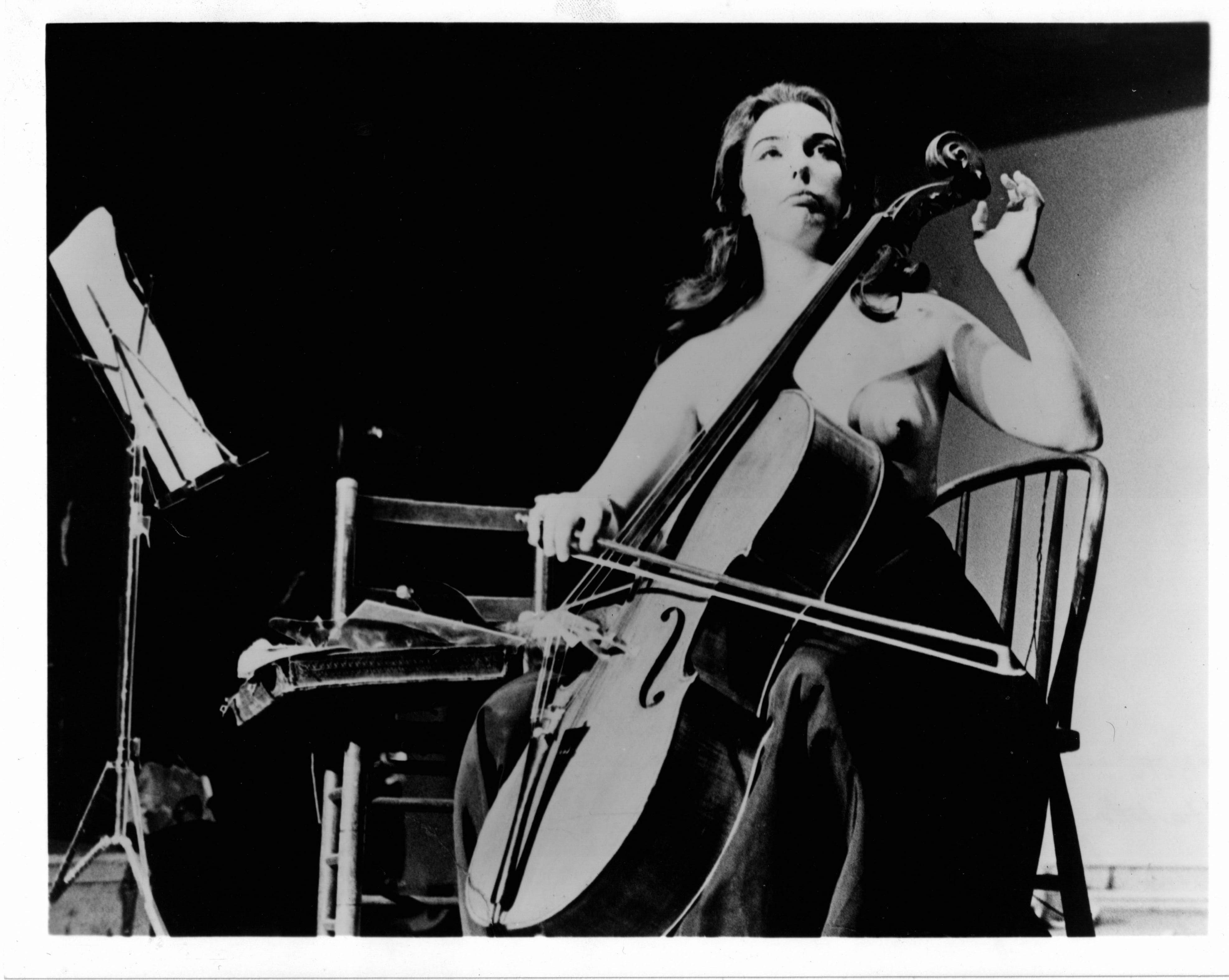 Fluxus und Feminismus beschäftigt sich beispielsweise mit Arbeiten von Charlotte Moorman.(Charlotte Moorman performing Nam June Paik, Museum Ostwall).