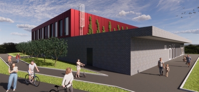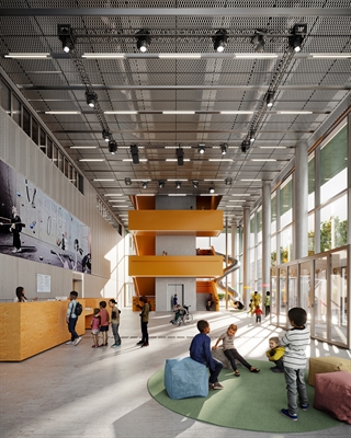 So soll die neue Zweifach-Halle an der Emschertal-Grundschule einmal aussehen - die Fertigstellung ist für den Herbst 2025 geplant.
