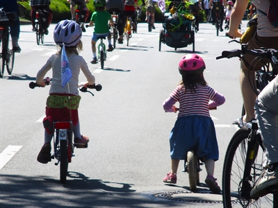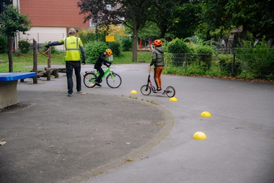 Die Kinder bewältigten mit Rollern, Laufrädern und Fahrrädern einen kleinen Parcours und übten sich mit sichtlicher Freude an der Bewegung.