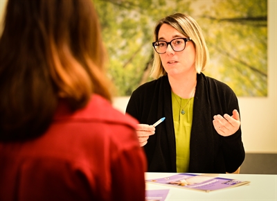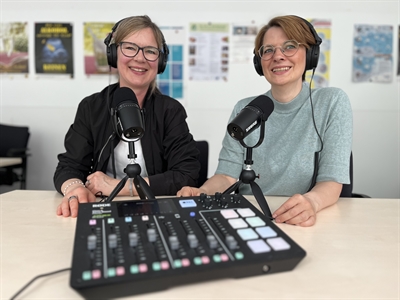 Jennifer Beck (links) und Katharina Rudolphi stecken hinter dem Podcast "Gesund & bunter" des Gesundheitsamts.
