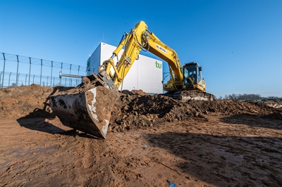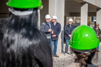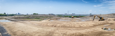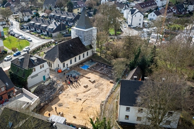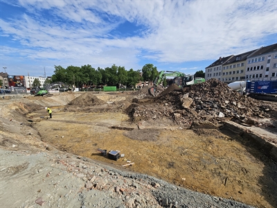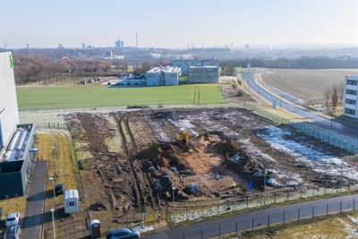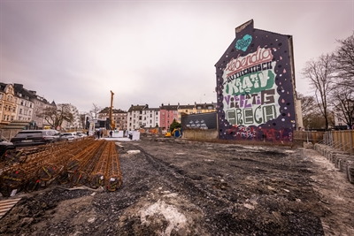 Noch ist hier eine riesige Baustelle - Anfang 2027 sollen die Gebäude fertig sein. Ein ehrgeiziger Zeitplan im Sinne der Kinder und Familien im Stadtbezirk.