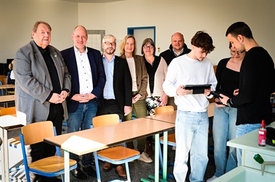 Neben den Sportler*innen sind auf dem Foto folgende Personen zu sehen (v. l. n. r.): Dr. Markus Tendahl (stv. Schulleiter Goethe-Gymnasium), Ute Mais (Bürgermeisterin), Birte Fischer (Mannschaftsbetreuerin), Christian Schubert (Mannschaftsbetreuer), Dirk Rosenthal (Ausschuss für den Schulsport), Philipp Cool (Mannschaftsbetreuer), Henrik Ziethoff (Ausschuss für den Schulsport)