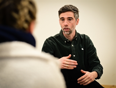 „Ich könnte hier stundenlang sitzen und auf den Rasen schauen“ - Moritz Rinke liest aus seinem Buch übers eigene Fan-Fanatikum im Stadion.