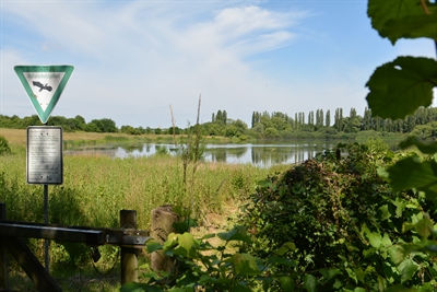 Diese neuen Schilder informieren künftig die Spaziergänger*innen im Bereich der Halde Hympendahl auf PHOENIX-West über die Funktion der Schutzzäune.