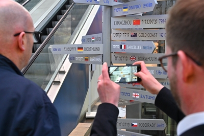 Noch 3086 Kilometer bis Dortmund: So erinnert Netanya an seine deutsche Partnerstadt.