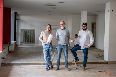 Noch hat das Team des "Prachtraums" viel zu renovieren im neuen Ladenlokal. Citymanager Tilmann Insinger (in der Mitte) freut sich über das neue Konzept, das mit Hilfe des Anmietungsfonds gefördert wird.