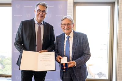 Oberbürgermeister Thomas Westphal (r.) überreichte Hartmut Anders-Hoepgen das Bundesverdienstkreuz am Bande.