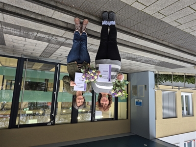 "Auf die Straße" ist eine Ausstellung über Protest von Studierenden in Zusammenarbeit mit dem MKK. (vL.: Anica Jacobsen und Taisiya Starostina)