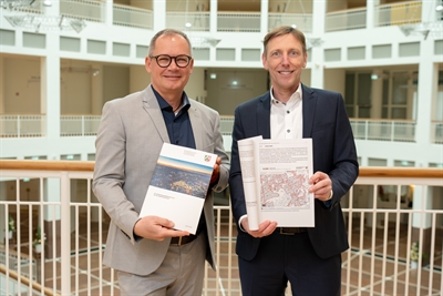 Präsentieren den Grundstücksmarktbericht 2025 (Pers. v.l.n.r.): Christian Hecker (Vorsitzender Gutachterausschuss Dortmund) und Ulf Meyer-Dietrich (stellv. Vors.).