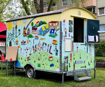 So sah das Flitzmobil aus, bevor es beschmiert wurde. Kinder und Jugendliche werden es gemeinsam mit einer Künstlerin verschönern