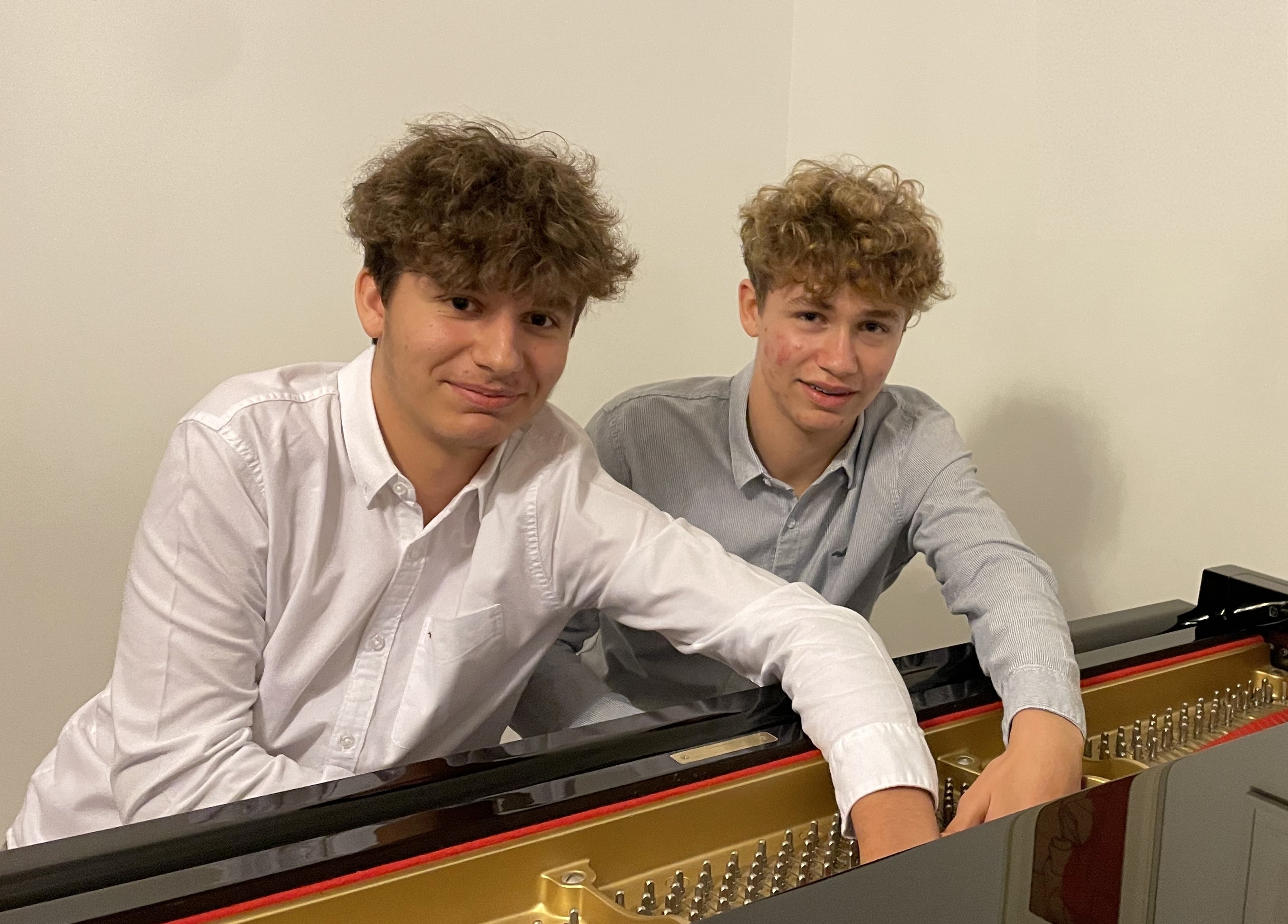 Spielen zu zweit beim Foyer-Konzert: Die Musikschüler Simon Laufen und Kristian Brill.