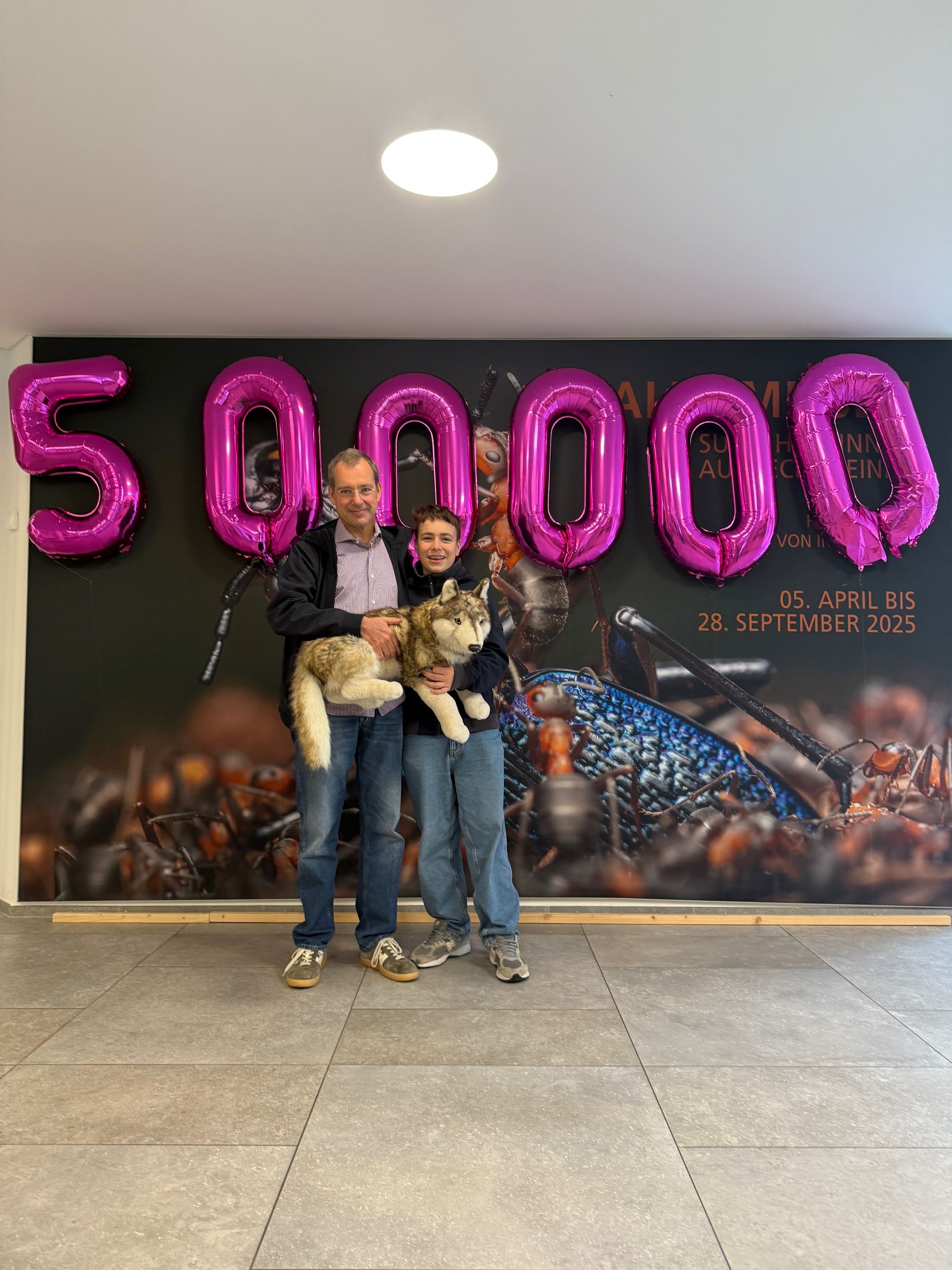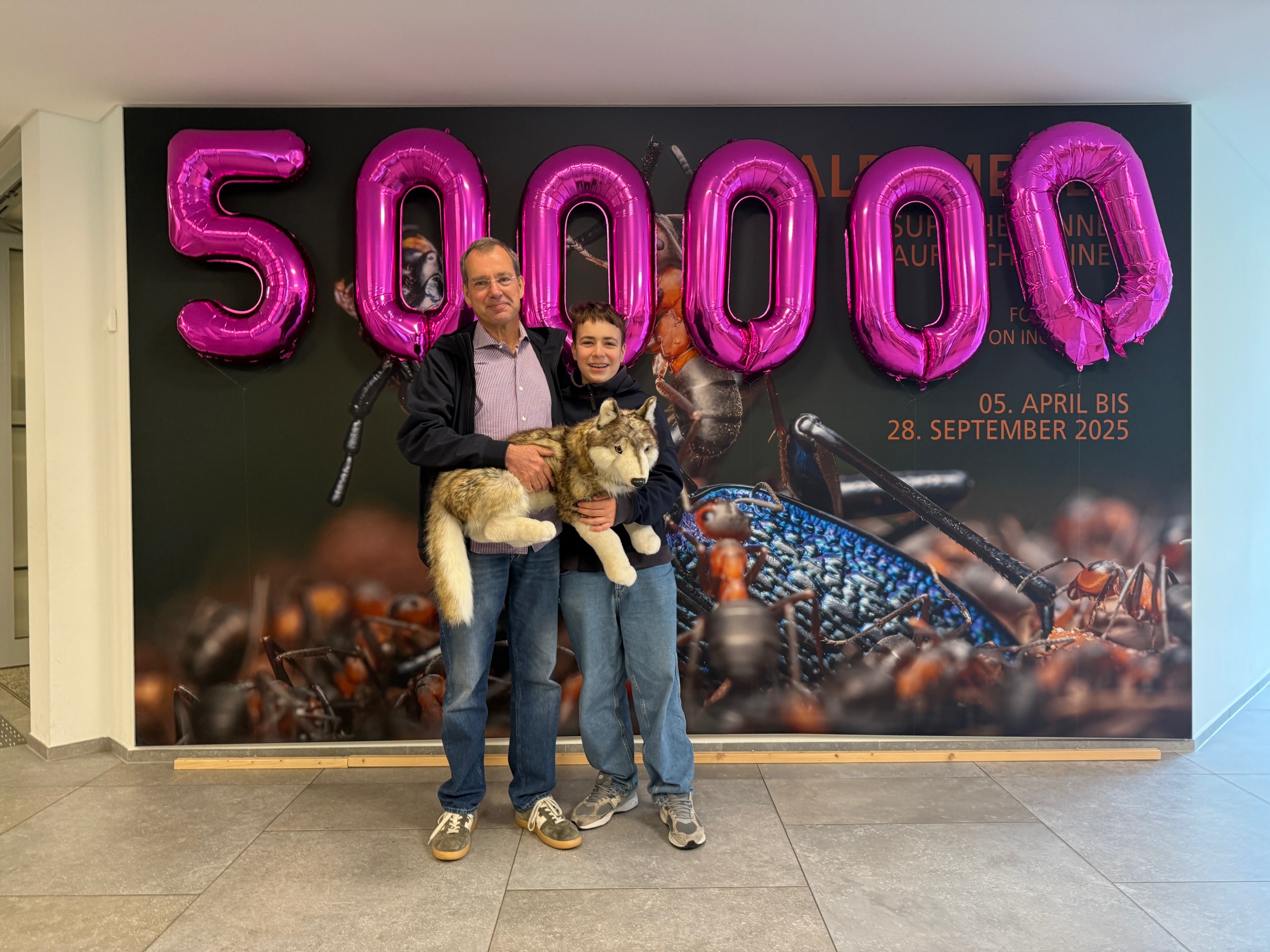 Stefan Dieterle und sein Sohn Raphael waren die 500.000 Besucher in fünf Jahren nach Wiedereröffnung des Naturmuseums .