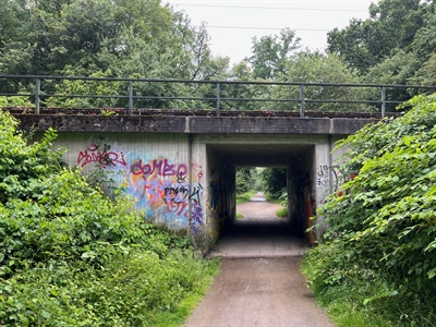 Um zu verdeutlichen, wie die Bäume aus dem Projekt „Grün verbindet“ das Quartier bereichern, hat die Stadt im September 2024 für einen Tag provisorische Baumscheiben an den zukünftigen Baumstandorten an der Mosselde aufgestellt.