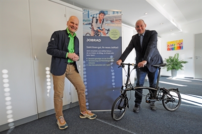 Joachim Rubel, JobRad Key Account Manager für die Region Mitte-West (l.), und Christian Uhr, Personal- und Organisationsdezernent der Stadt Dortmund.