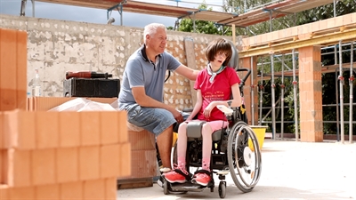 Wohnen ohne Handicap: Standfoto aus dem Videoporträt zum inklusiven Wohnprojekt "Wohnen ohne Handycap" in Sölderholz
