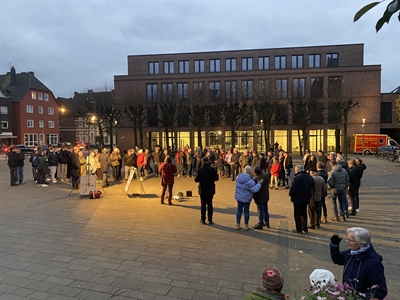 Auf dem Benölkenplatz in Bocholt versammeln sich Menschen für ein religionsübergreifendes Friedensgebet.