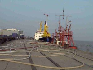 Ausgelaufener Dieselkraftstoff im Osthafen |