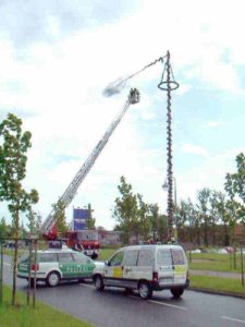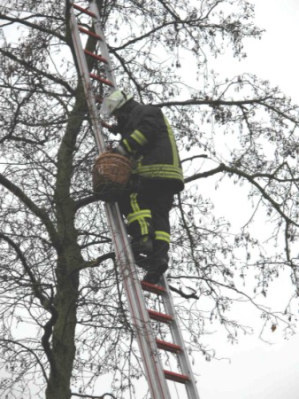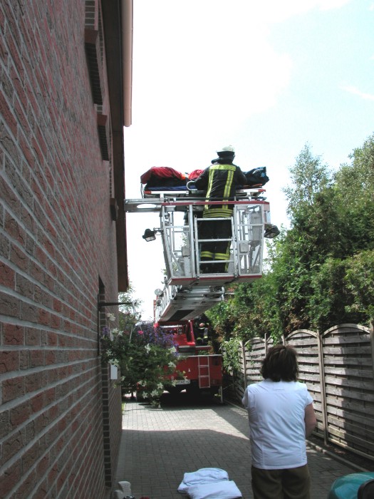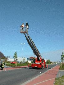 Mit dem Korb der Drehleiter durfte ganz nach oben gefahren werden |