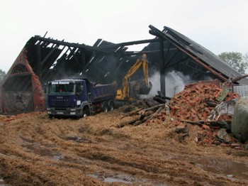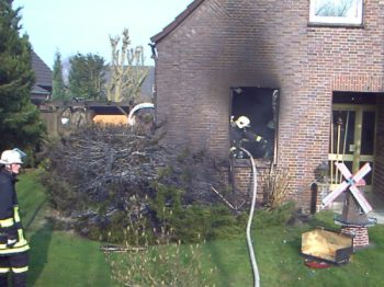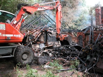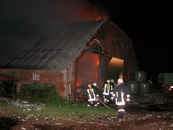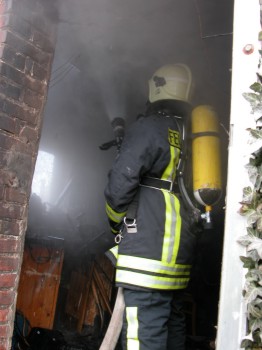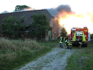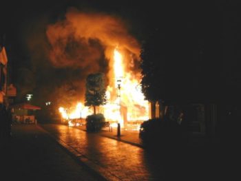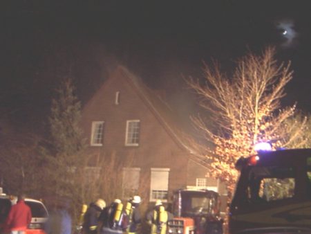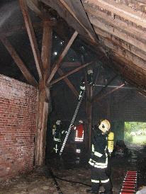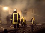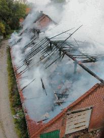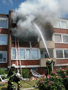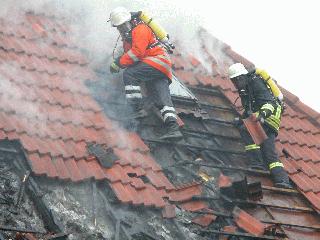 Auflodern der Flammen nach Einsturz eines Teils einer Giebelwand |