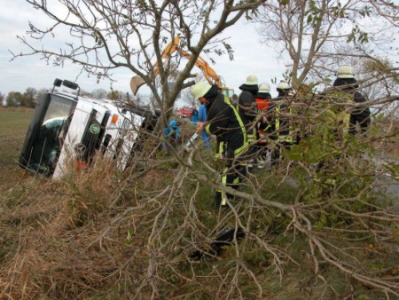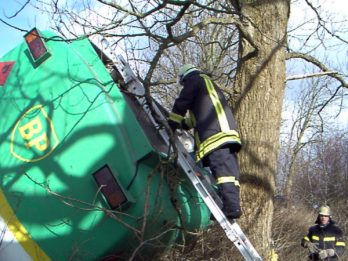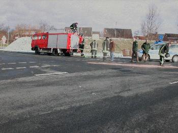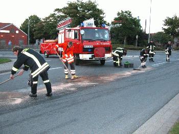 15 Feuerwehrleute reinigten die stark verschmutzte Fahrbahn |