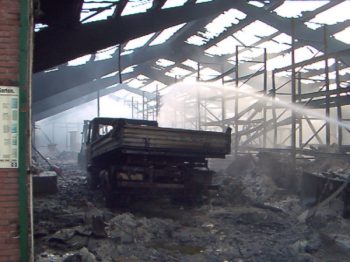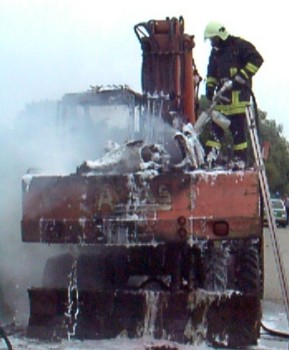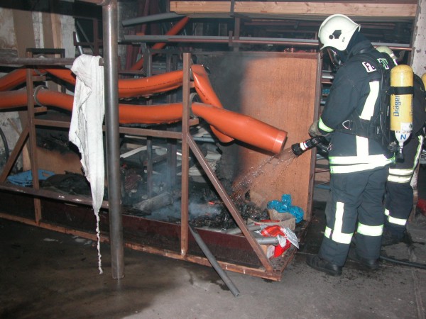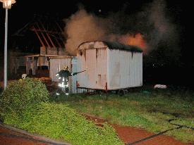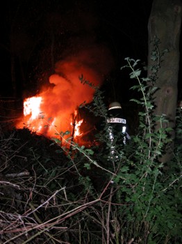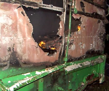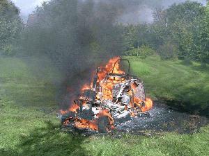 Ablöschen des Wagens durch die durchgebrannte Hinterwand. |