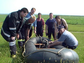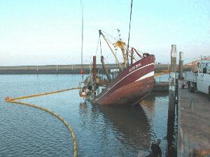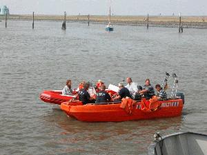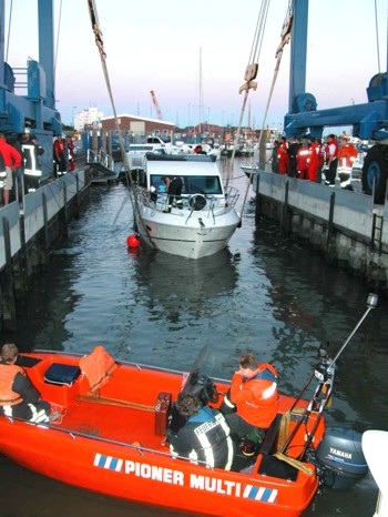 Motorboot im Norder Hafen mußte ausgepumpt werden |