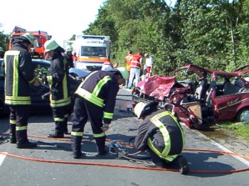 Aus einem Fahrzeug konnte die Fahrerin nur tot geborgen werden. |