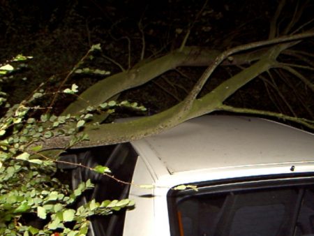 Abgebrochene Äste haben sich im Baum verfangen und gefährden den Verkehr |