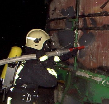 Atemschutztrupp der Besatzung erwartet die Feuerwehr |