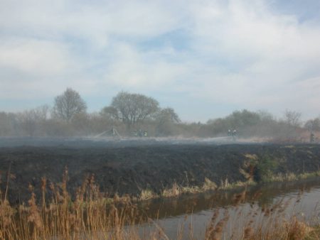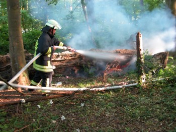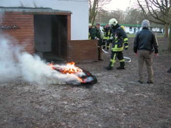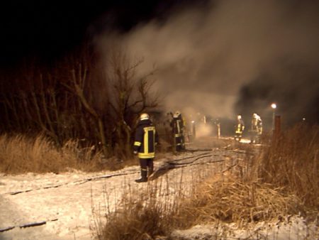 Ablöschen eines müllhaltigen Osterfeuers im Bereich des Deichrichterweges |