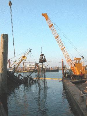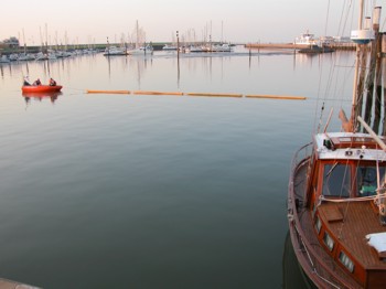 Mit einer Ölsperre wird die Verschmutzung des Hafens verhindert |