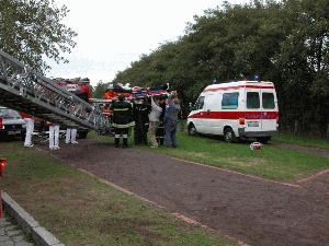 Auch die Drehleiter kam bei der Übung zum Einsatz |