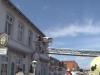 An der Dachkante des Kinos mussten zahlreiche Eiszapfen beseitigt werden |