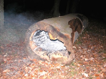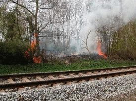 Am Marschweg brannten Überreste eines Osterfeuers |