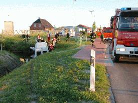 Auffüllung der Kurparkgrachten in Norddeich durch die Feuerwehr |