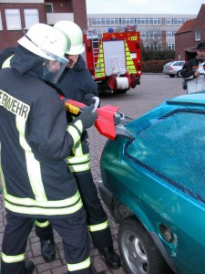 Öffnen einer verklemmten Fahrzeugtür mit dem Spreizer |