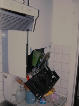 Ölmühlenweg: Blick in das ausgebrannte Zimmer |