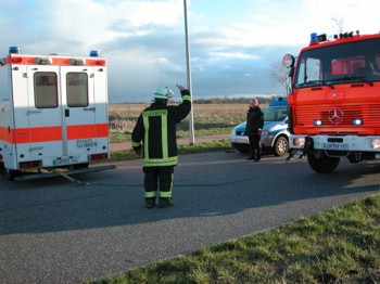 Neben der Feuerwehr war auch eine Streifenwagenbesatzung der Polizei sowie das DRK vor Ort |