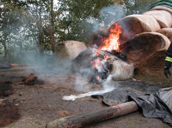 Auf diesem Stoppelfeld brannte ungepresstes Stroh |