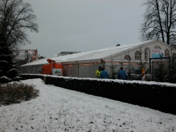 Aufbau von Versorgungszelten durch das Rote Kreuz |