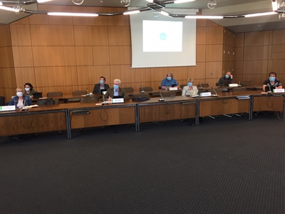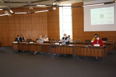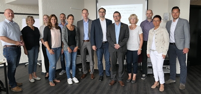 Bocholts stellvertretende Bürgermeisterin Elisabeth Kroesen (2. v. r.) empfing die Verantwortlichen für EU-Kontakte und -Projekte in den Kommunen des Kreises Borken im Bocholter Europa-Haus, 7. v. l.. Michael Weitzell, Leiter der Stabsstelle des Kreises, und 5. v. r. Dr. Gerd Eckstein, EU-Koordinator des Kreises