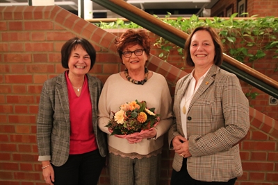 Die Vorsitzende des Arbeitskreises für die Gleichstellung von Frau und Mann, Annette Demes (rechts) und die Gleichstellungsbeauftragte des Kreises, Irmgard Paßerschroer (links), ehrten Uta Röhrmann für 30-jährige Mitgliedschaft
