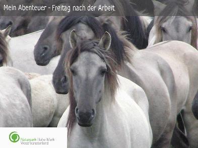 Die Wildpferde im Merfelder Bruch: Ein Besuch bei ihnen verspricht einen Ausflug in eine andere Welt. Foto: Naturpark Hohe Mark - Westmünsterland